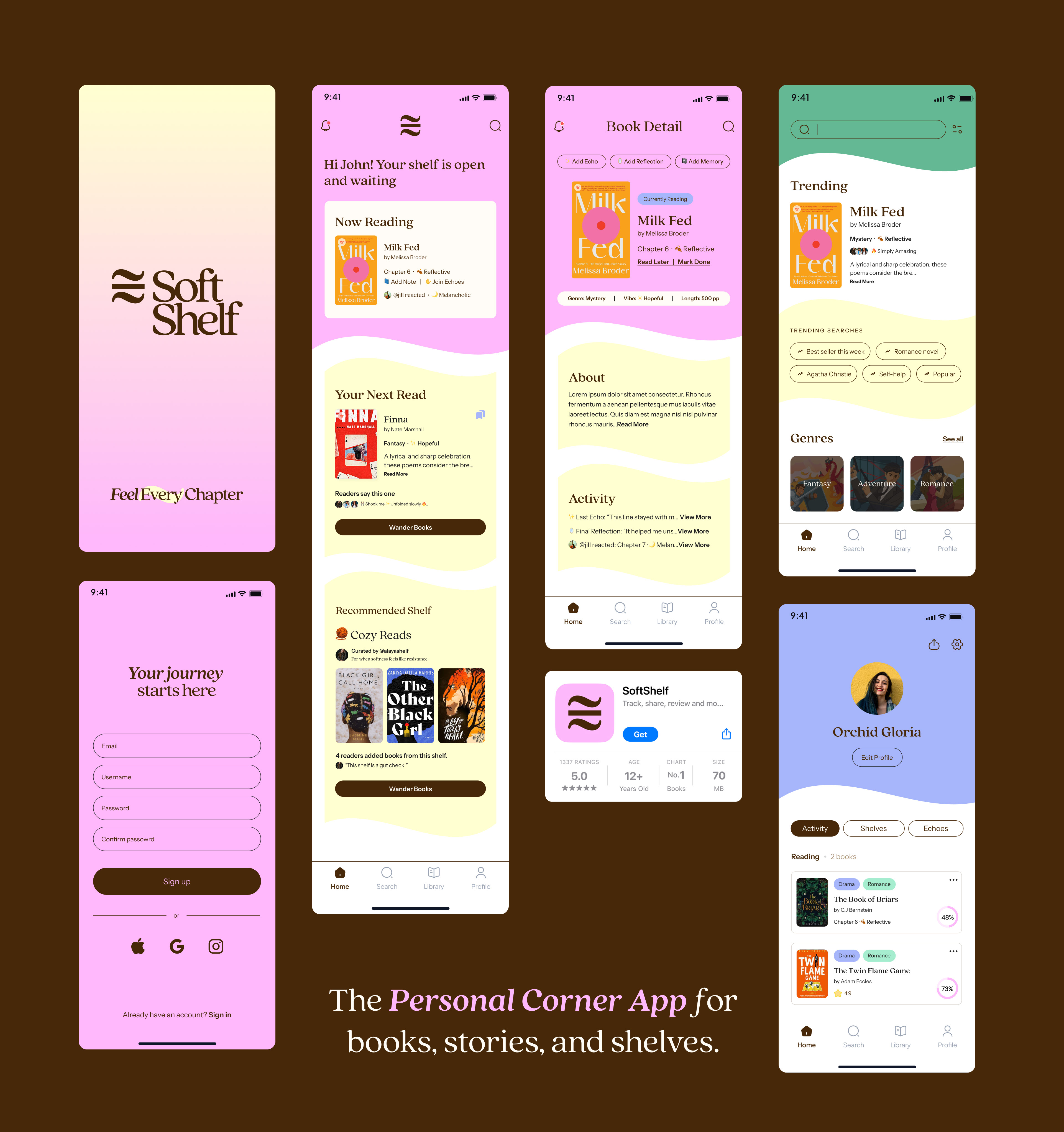 SoftShelf is a cozy, emotionally-centered reading app that reimagines how people track, share, and reflect on books. Instead of star ratings or performance goals, it focuses on feelings, memories, and meaning. It’s where stories meet life — and where one's shelf becomes a reflection of their inner world.